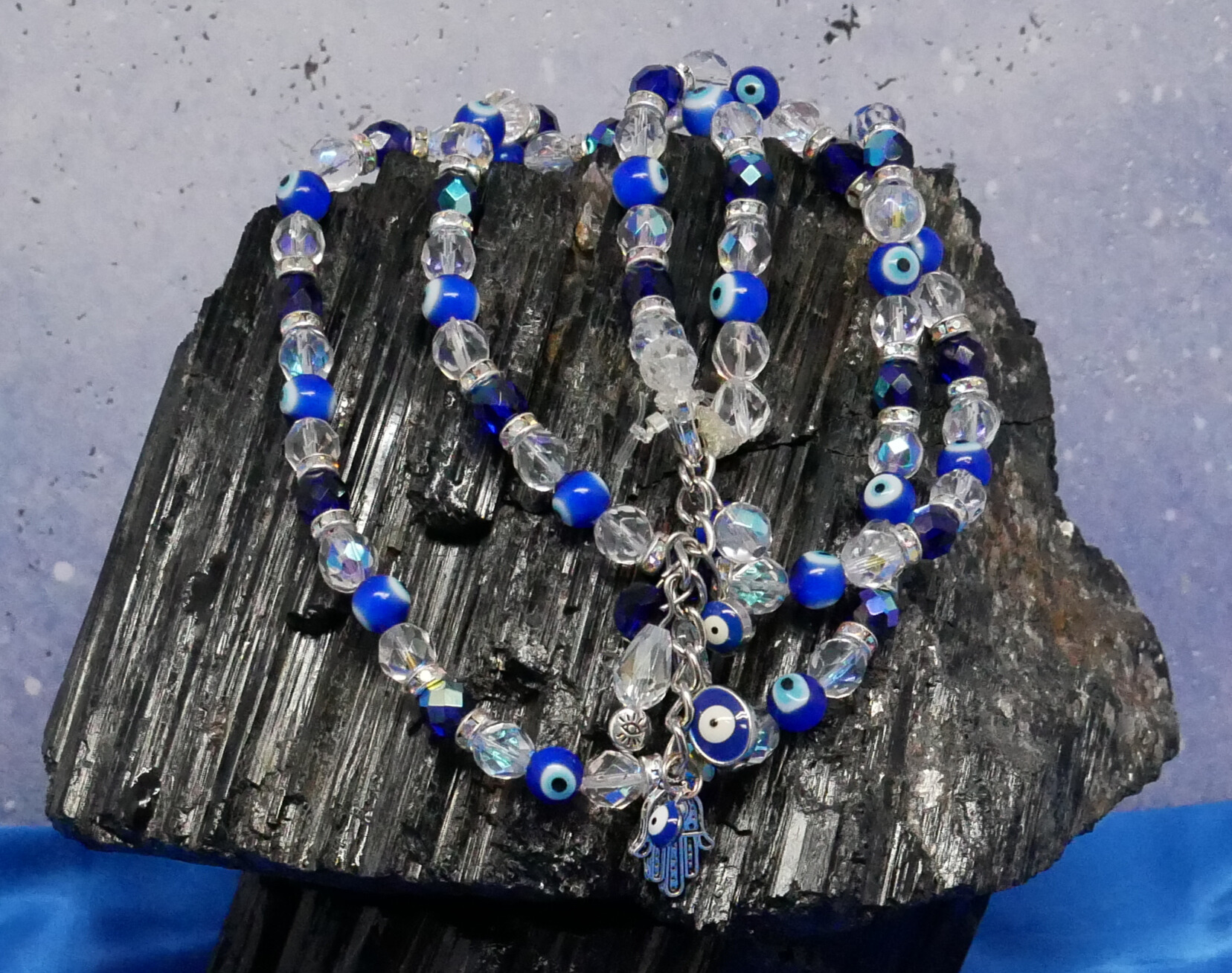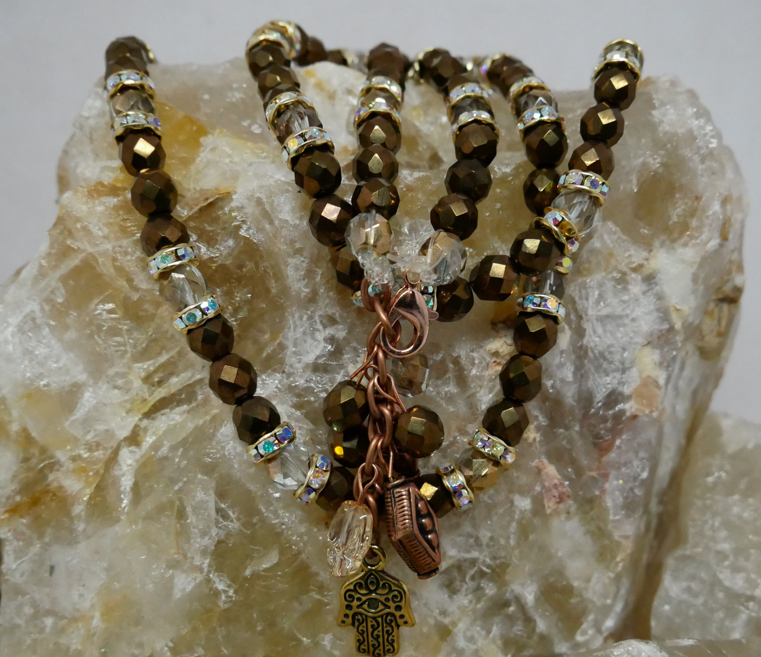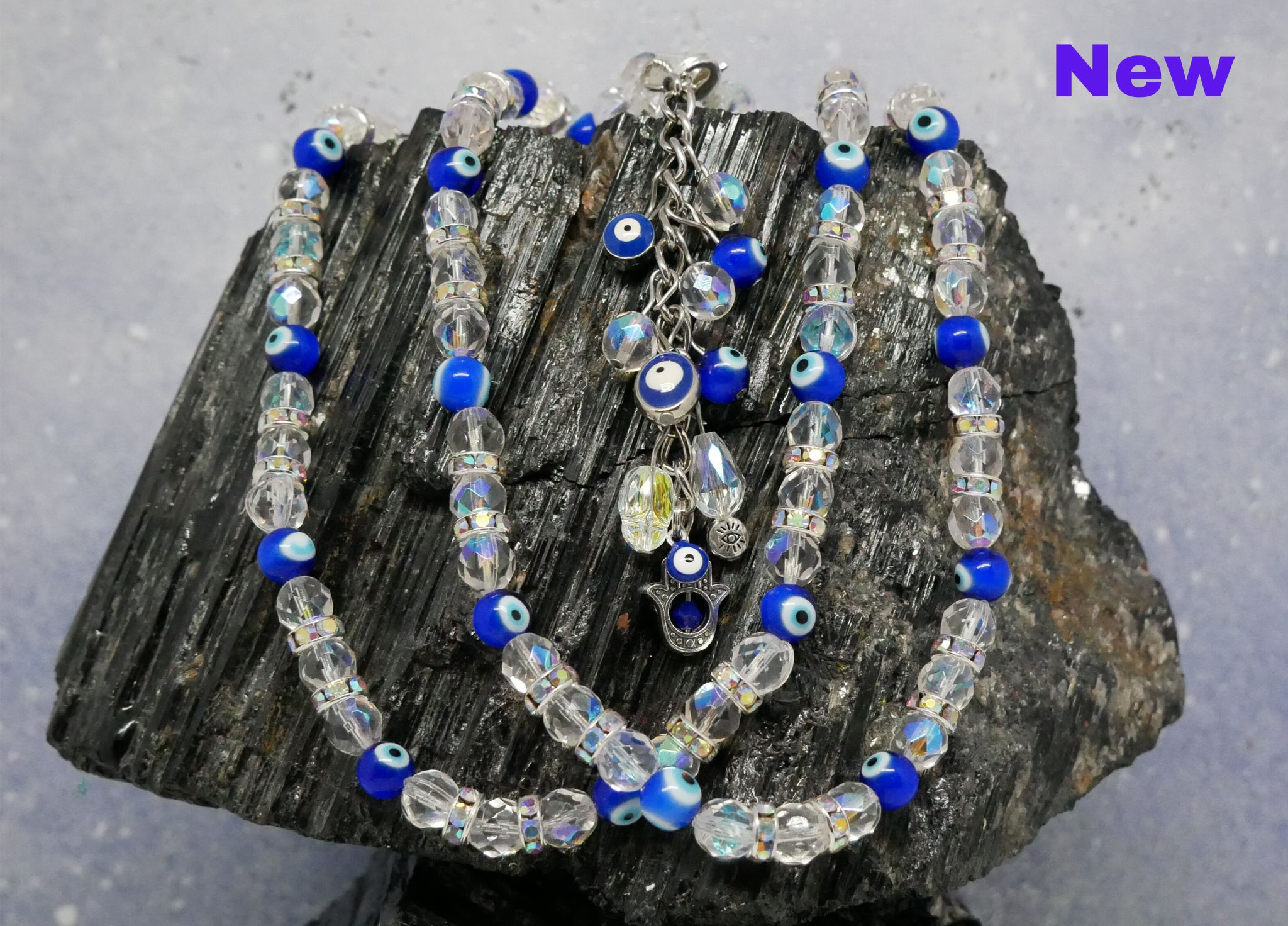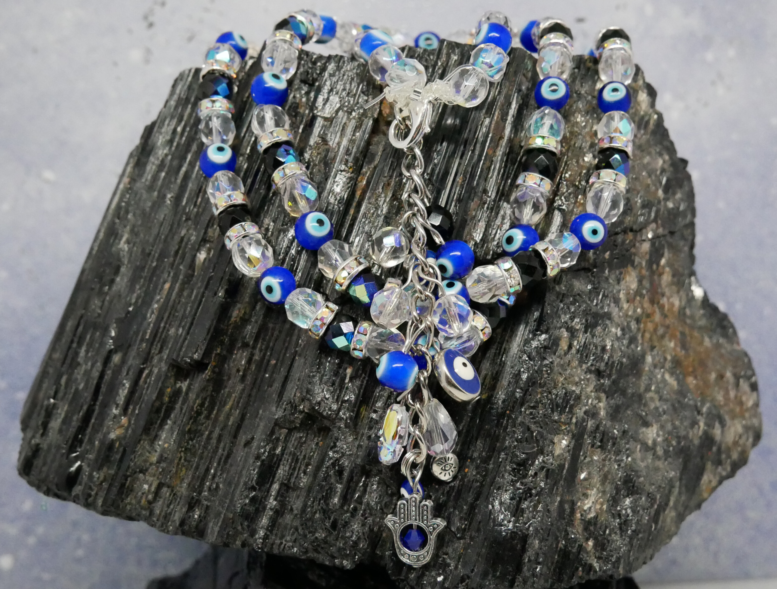 The base of the Classic BellyBelt, with much more. Larger beads and crystals with more colourful styles. They have a signature tassel with the Khamsa Charm and larger drop beads.